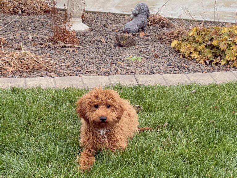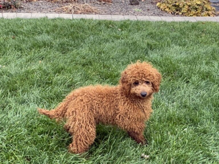 Beautiful apricot and white girl. Sweet easygoing and calm personality and should be 13-14 pounds.
