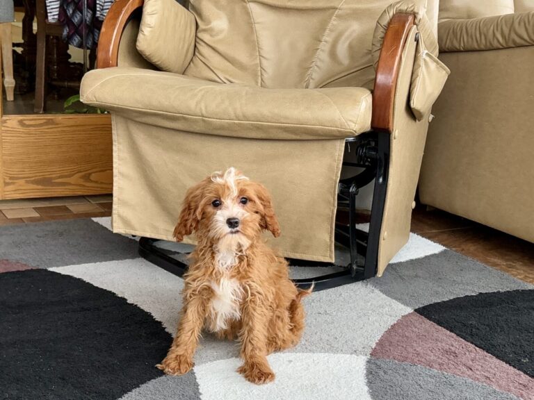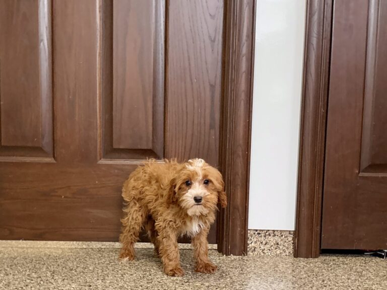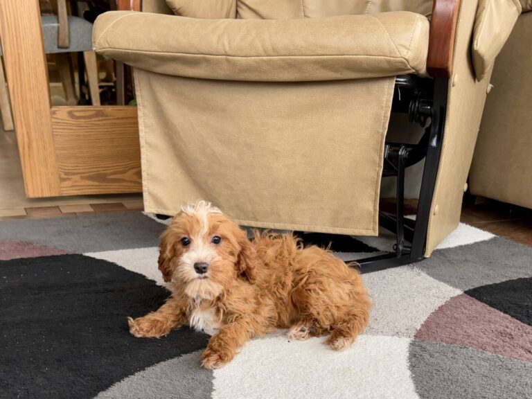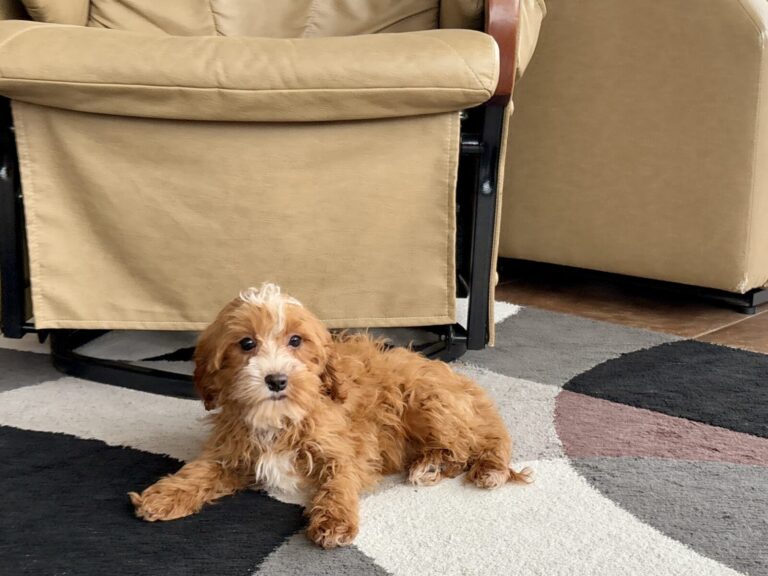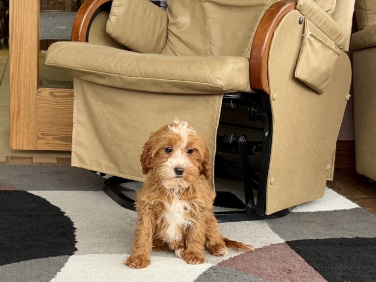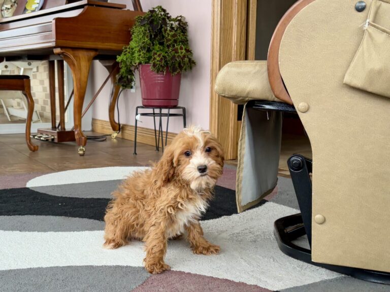 Jay is a beautiful non shedding hypoallergenic red apricot Cavapoos with a darling personality.
